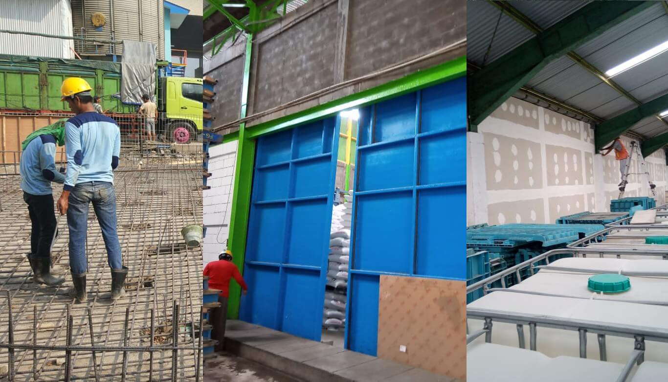 Konstruksi gudang dan pabrik dengan standar industri terbaik.